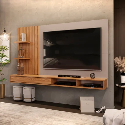 Painel para TV até 65″ com Nicho Vênus Caemmun – Off White/Freijó
