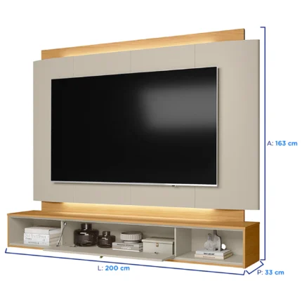 Painel para TV até 70″ com LED e Espelho Pietro DJ Móveis – Carvalho Natural/Alecrim