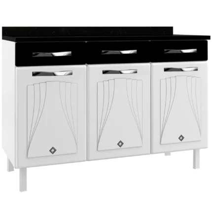 Balcão com Tampo 3 Portas 2 Gavetas 123cm Star Telasul – Branco/Preto