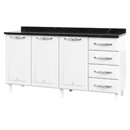 2 es Balcão com Tampo 3 Portas 4 Gavetas 160cm Telasul Star - Branco Cód.