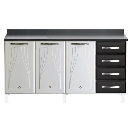 Balcão com Tampo 3 Portas 4 Gavetas 160cm Telasul Star – Preto E Branco