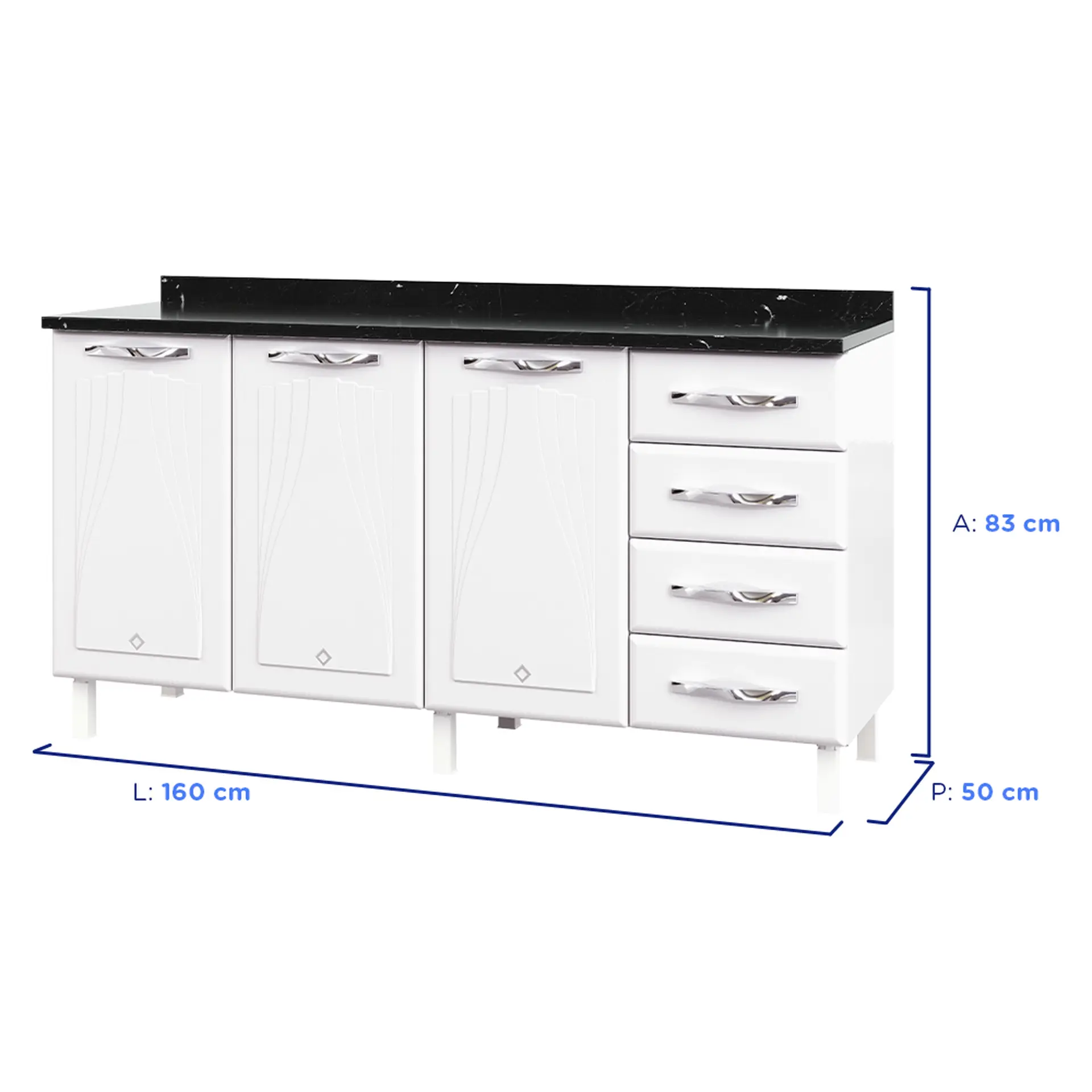 Balcão com Tampo 3 Portas 4 Gavetas 160cm Telasul Star