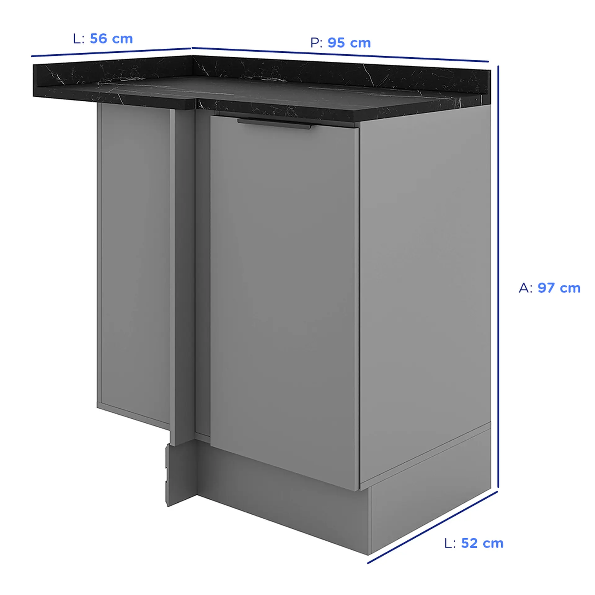 Balcão de Canto com Tampo 1 Porta 95 cm Lumina Telasul – Cinza