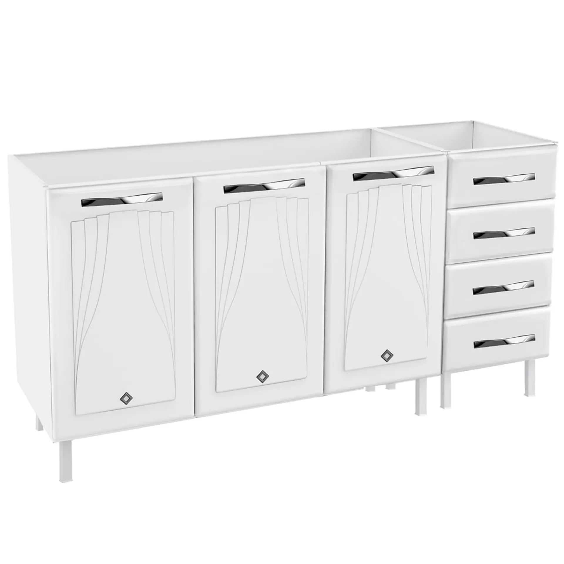 Início Moveis Balcão Balcão sem Tampo 3 Portas 4 Gavetas 160cm Star Telasul em Aço – Branco