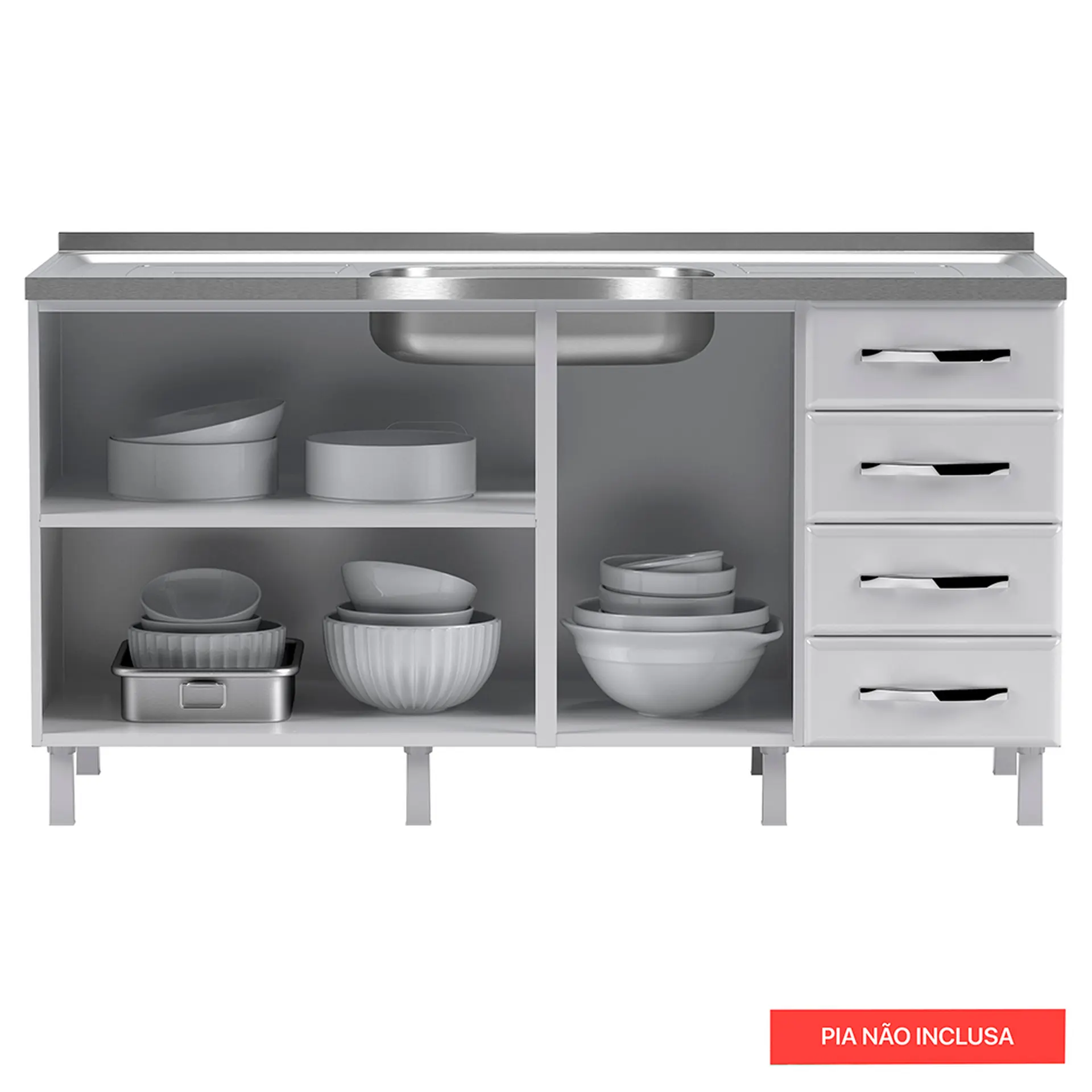 BALCÃO SEM TAMPO 3 PORTAS 4 GAVETAS 160CM STAR TELASUL EM AÇO