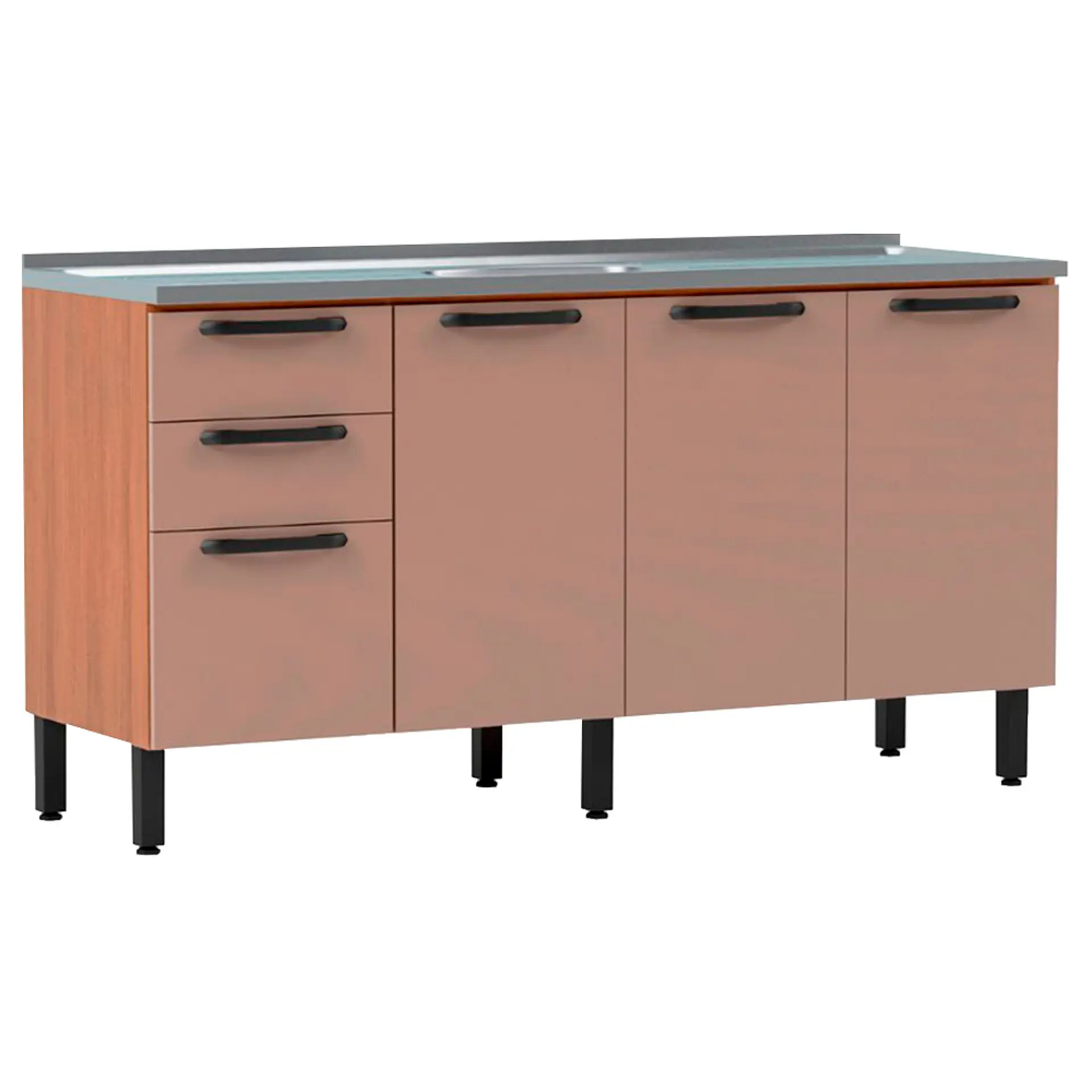 Balcão sem Tampo 4 Portas 2 Gavetas 160 cm Caiena Telasul – Mel/Fume