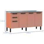 Balcão sem Tampo 4 Portas 2 Gavetas 160 cm Caiena Telasul – Mel/Fume Cód.