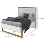 Cama de Solteiro com Cabeceira Estofada MDP MDF Lopas Loop - Amendoa Clean/Bege