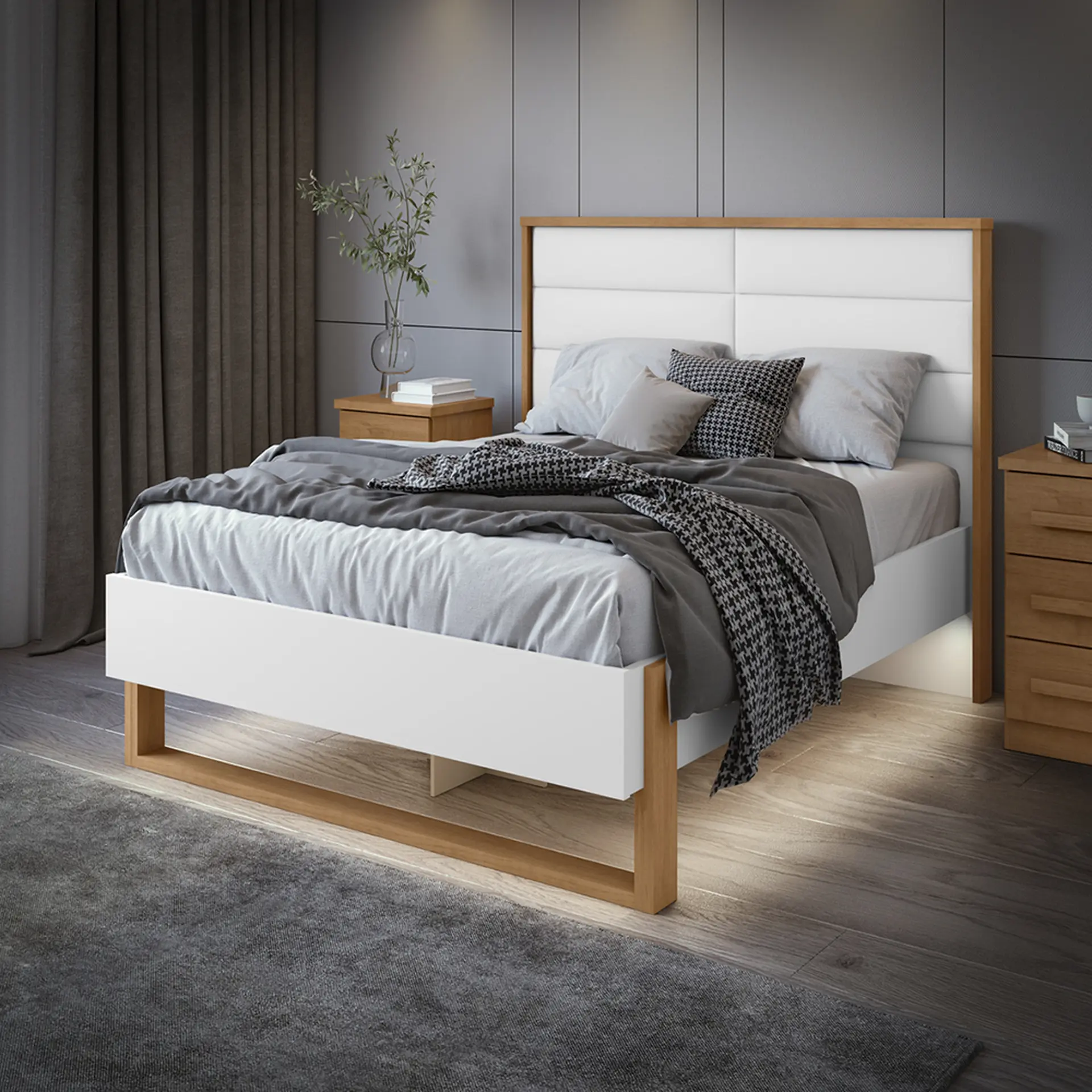 Cama Casal Freetown Lopas com Led – AMENDOA CLEAN/BRANCO