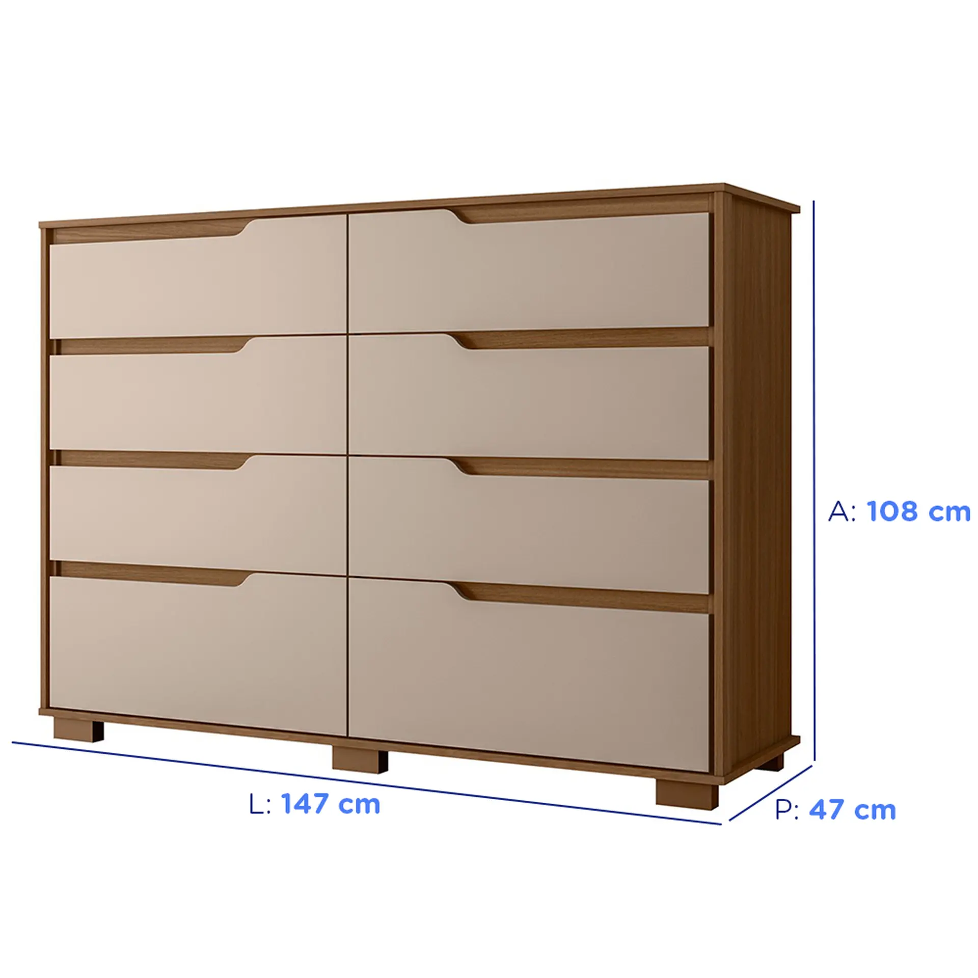 Cômoda 8 Gavetas MDP rediças Telescópicas Georgia Moval – Carvalho/Fendi Cód.