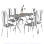 3 es Conjunto de Mesa 6 Cadeiras Tampo Granito Athenas Fabone – Branco Prata/ Vegetale Cód.
