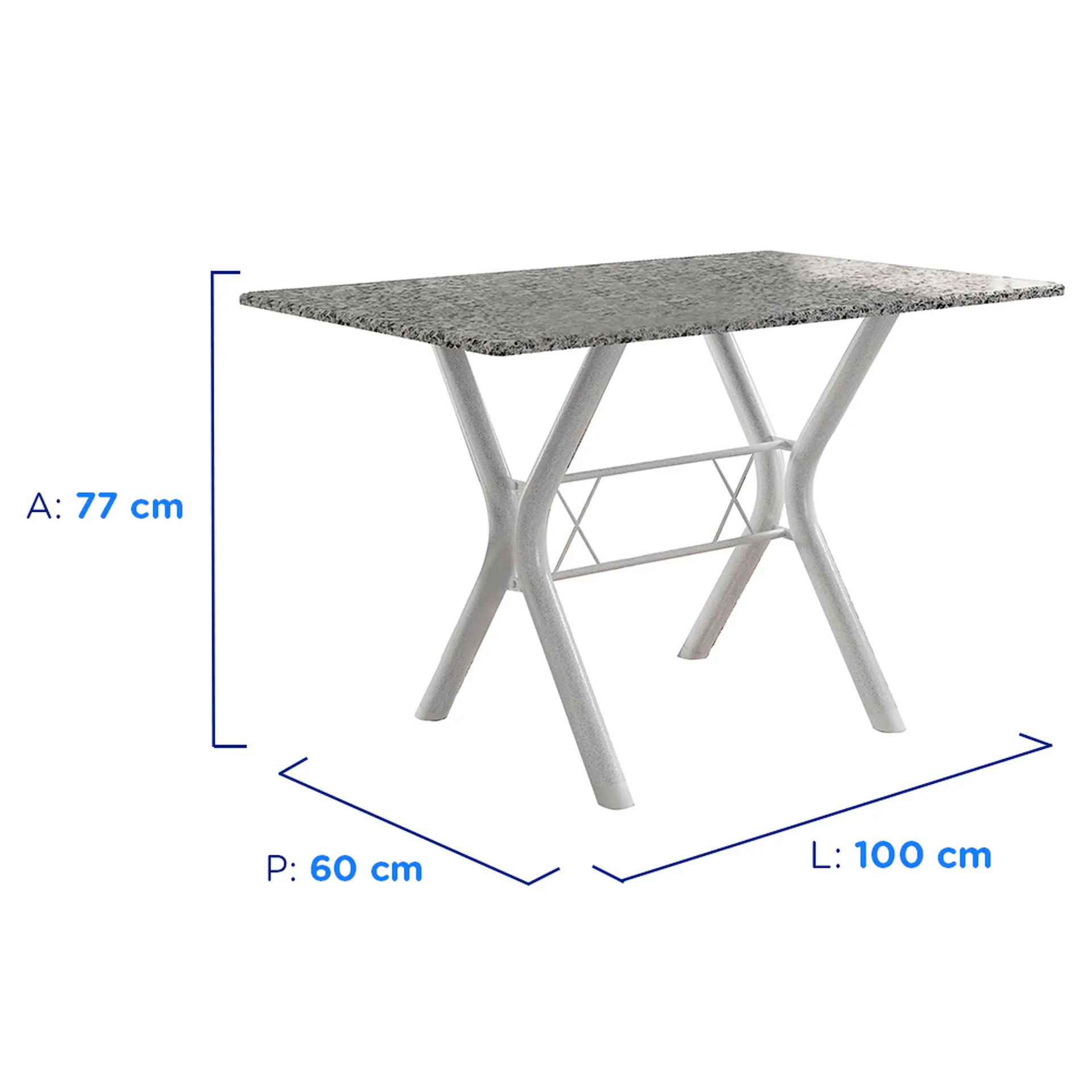 Conjunto de Mesa 6 Cadeiras Tampo Granito Athenas Fabone – Branco Prata/ Vegetale
