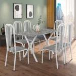Início Moveis Mesas e Cadeiras Conjunto de Mesa 6 Cadeiras Tampo Granito Athenas Fabone – Branco Prata/ Vegetale