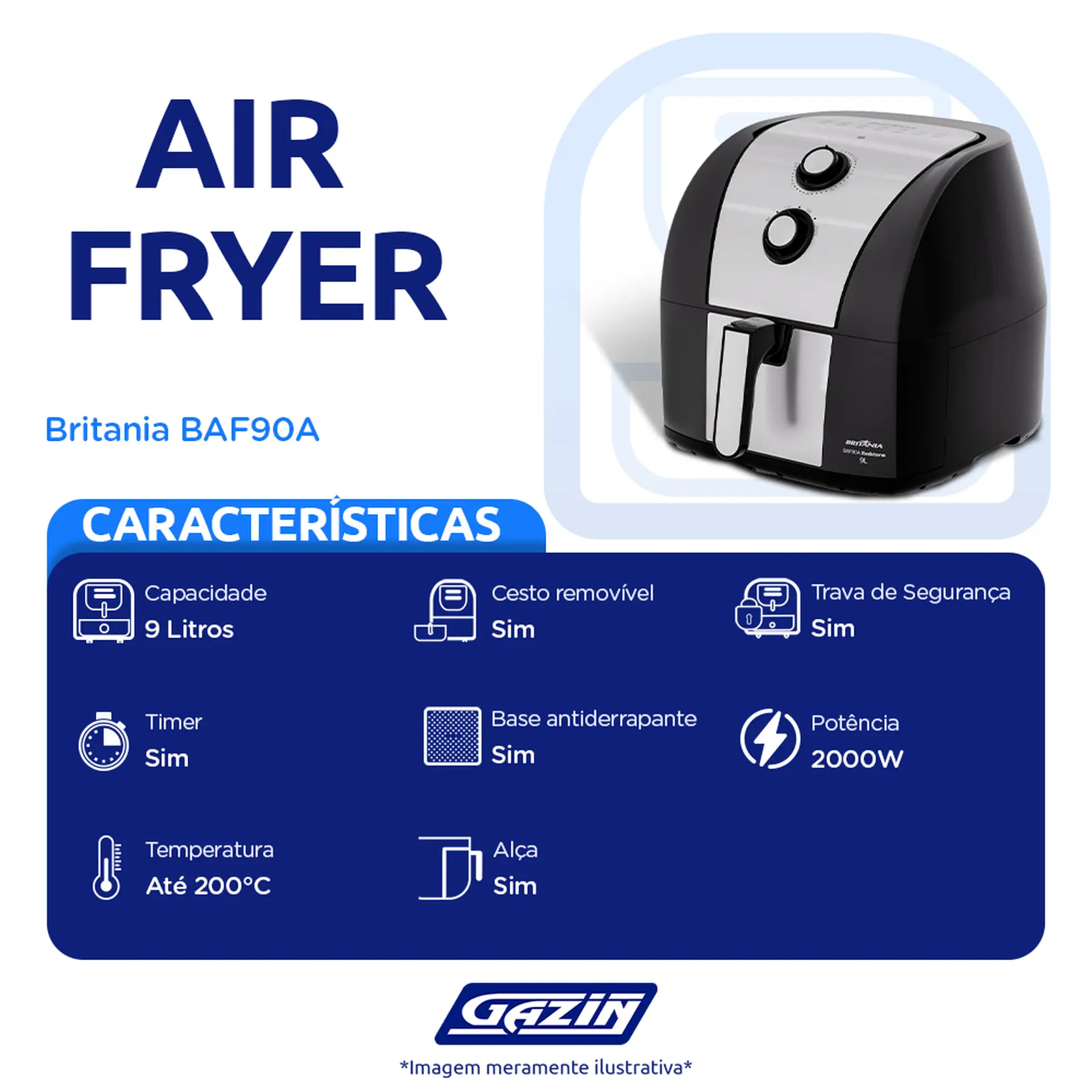 FRITADEIRA ELÉTRICA AIR FRYER BRITÂNIA BAF90A 9L 2000W