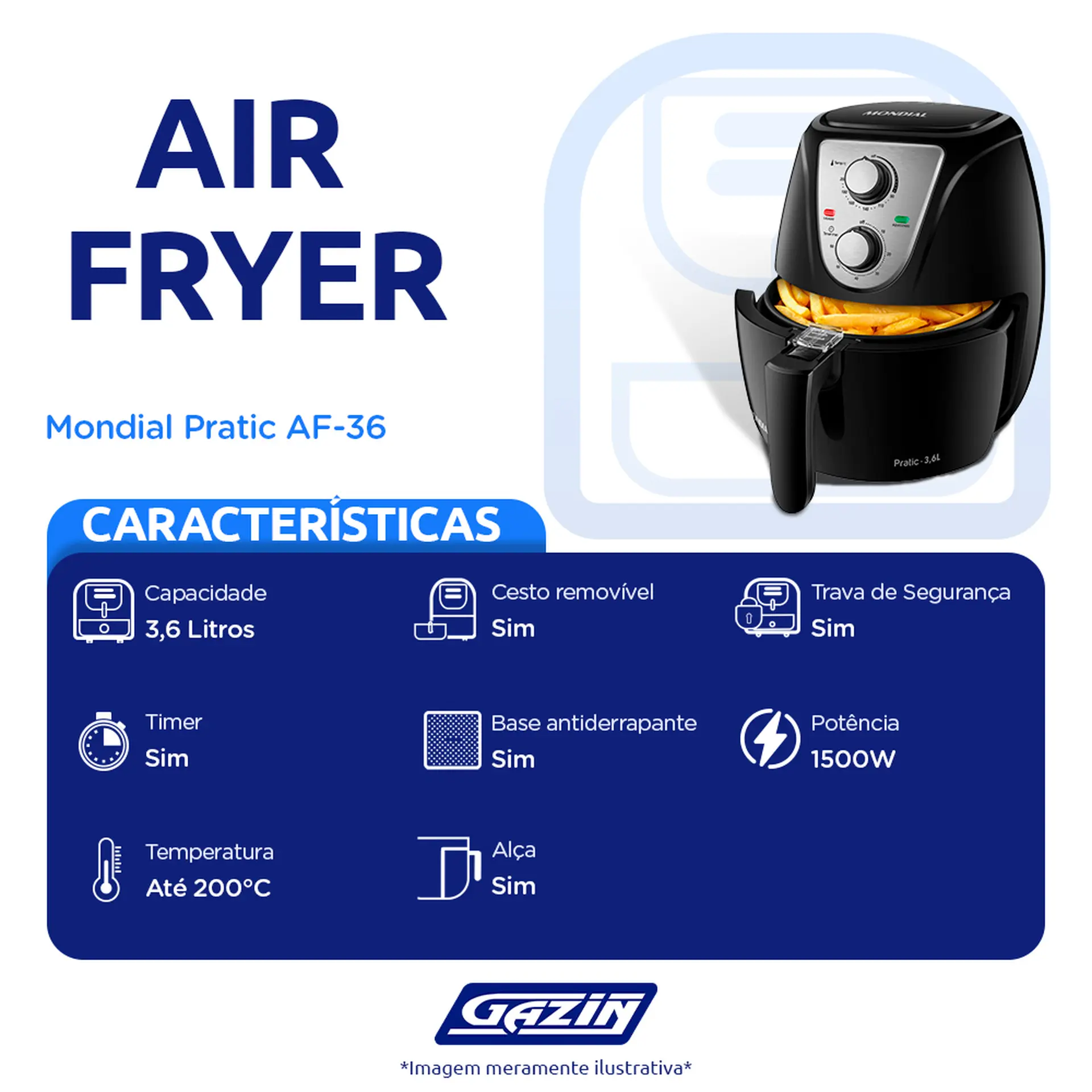 Fritadeira Elétrica Air Fryer Mondial Pratic AF-36 3,6L 1500W