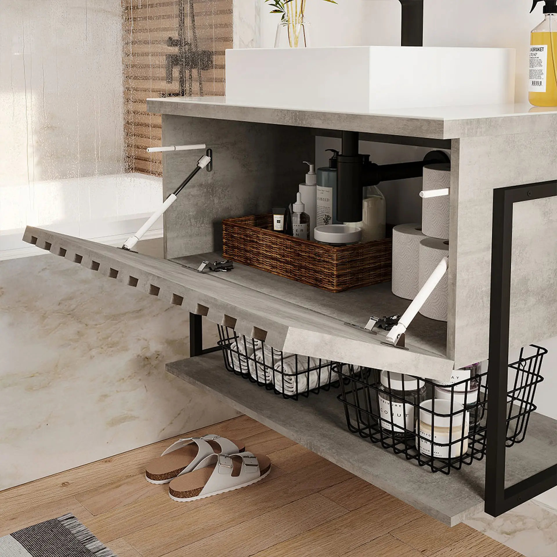 Gabinete para Banheiro 1 Porta Basculante MDF Havaí MGM – Cimento