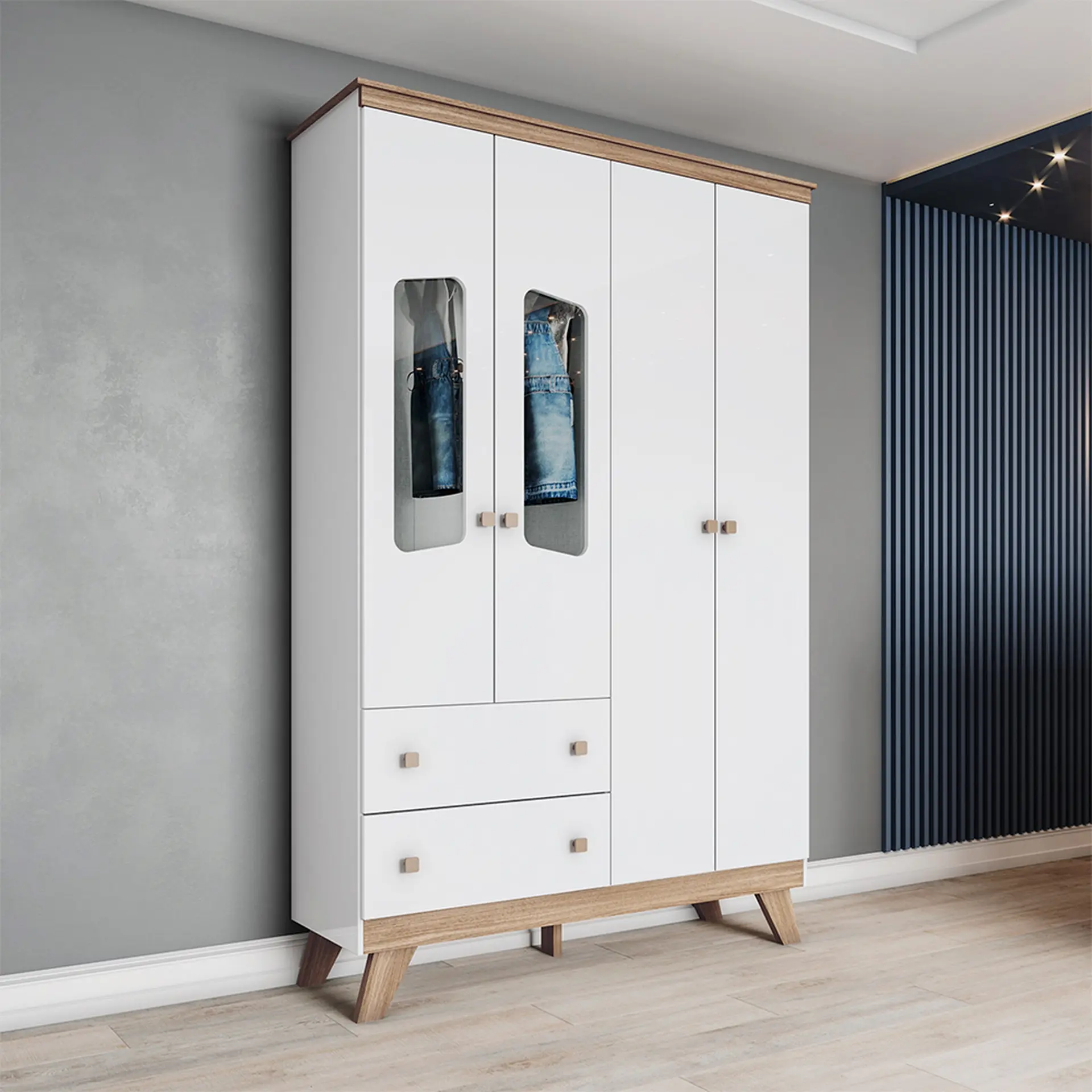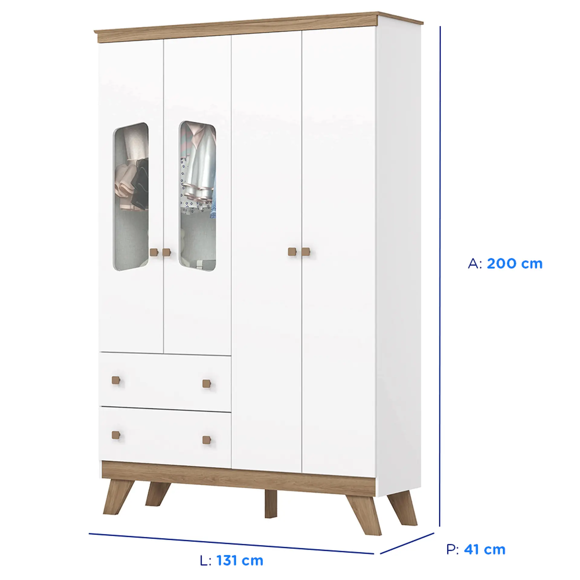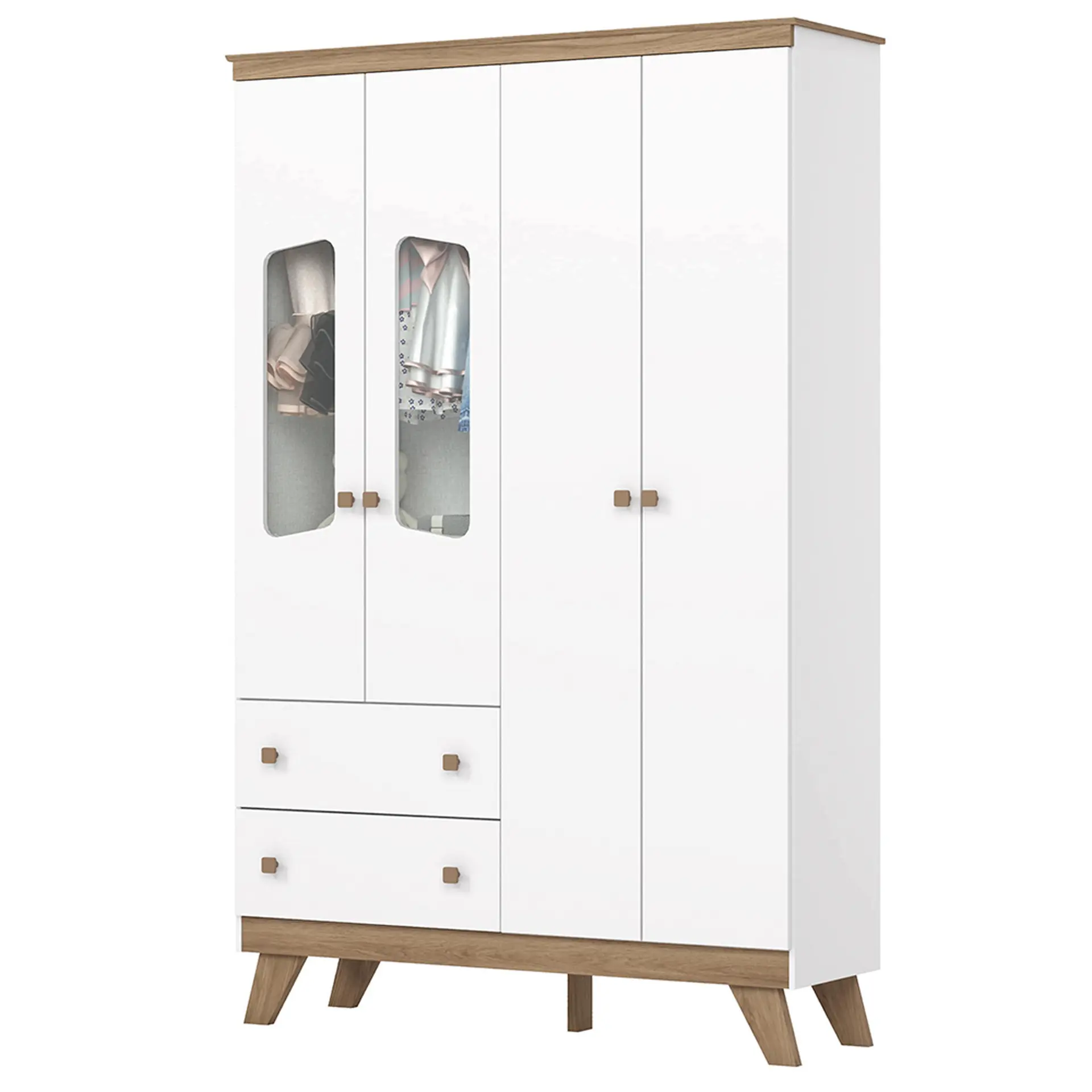 Guarda-Roupa Infantil 4 Portas 2 Gavetas Confete Henn Roupeiro – Branco/Jequitiba HP