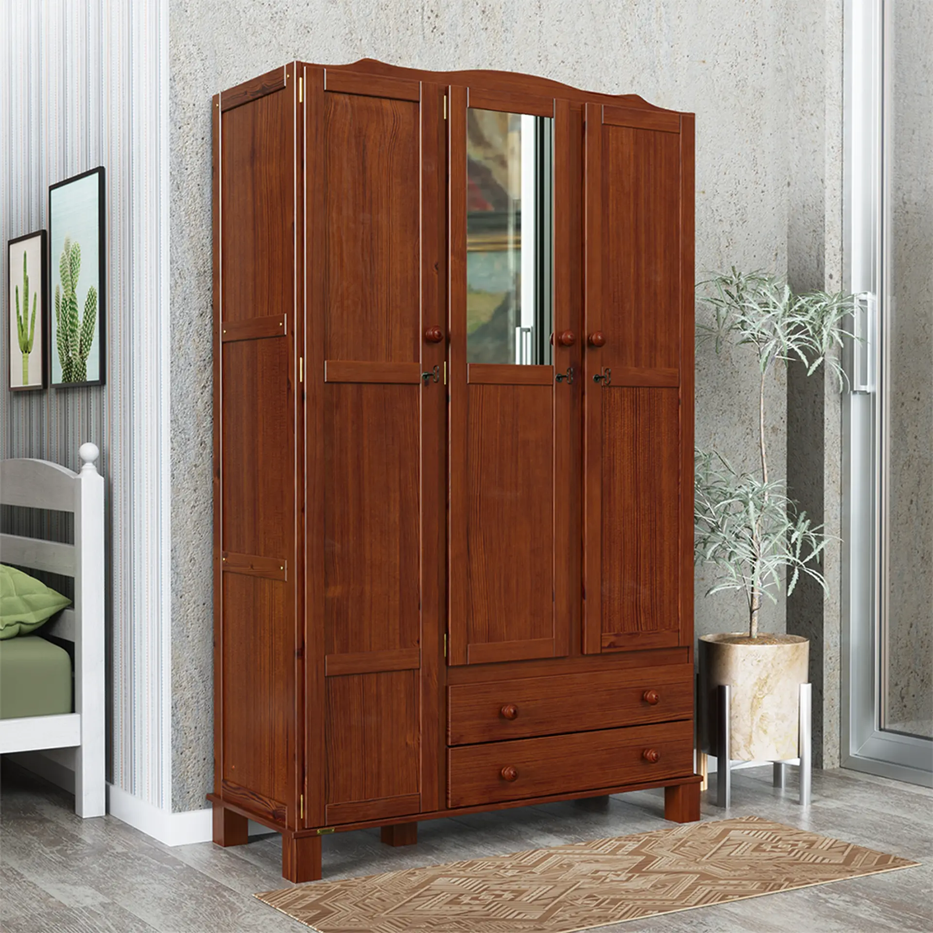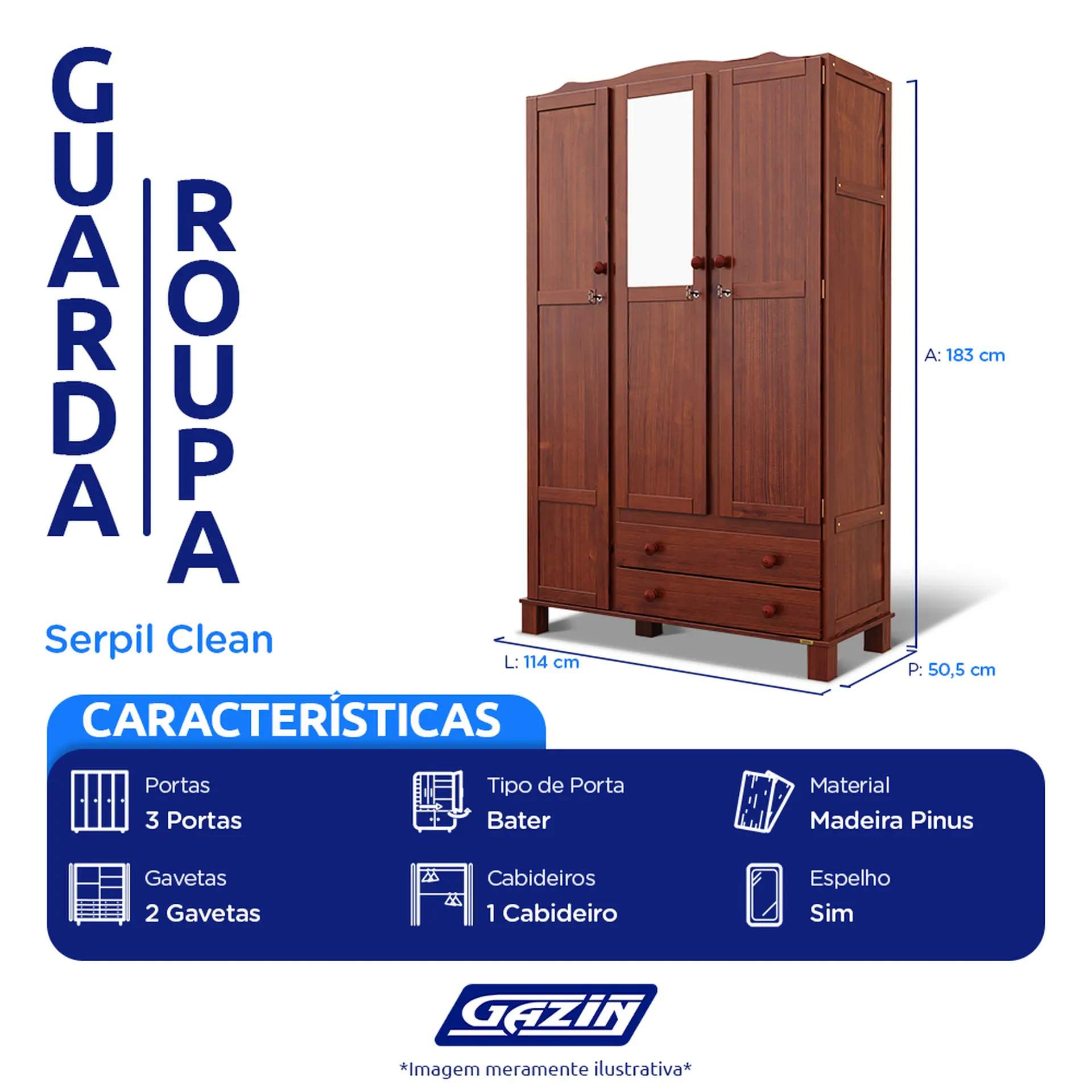 Guarda-Roupa Solteiro 3 Portas Bater 2 Gavetas Clean Serpil Roupeiro – Nogal Acetinado