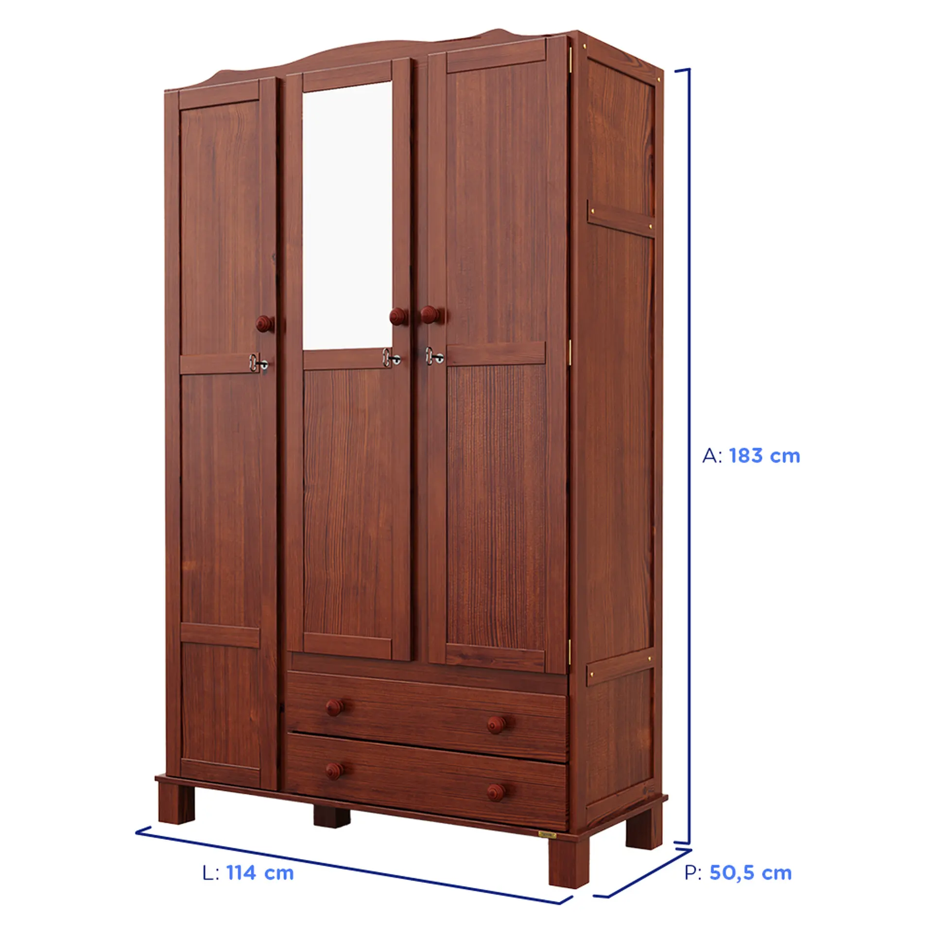 Espaço superior: possui um maleiro interno para organizar itens maiores ou de pouco uso. Segurança e praticidade: as portas contam com fechamento magnético duplo e fechadura com chave, oferecendo mais segurança para seus pertences. Durabilidade interna: O fundo do roupeiro e das gavetas é feito com chapa modelo eucadur, que ajuda a proteger contra o mofo. Organização firme: Três prateleiras internas fixas, que suportam até 7 kg cada, para uma organização estável de seus objetos.