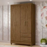 Início Moveis Guarda Roupa Guarda-Roupa Solteiro 4 Portas Bater 2 Gavetas Chile Moval – Castanho