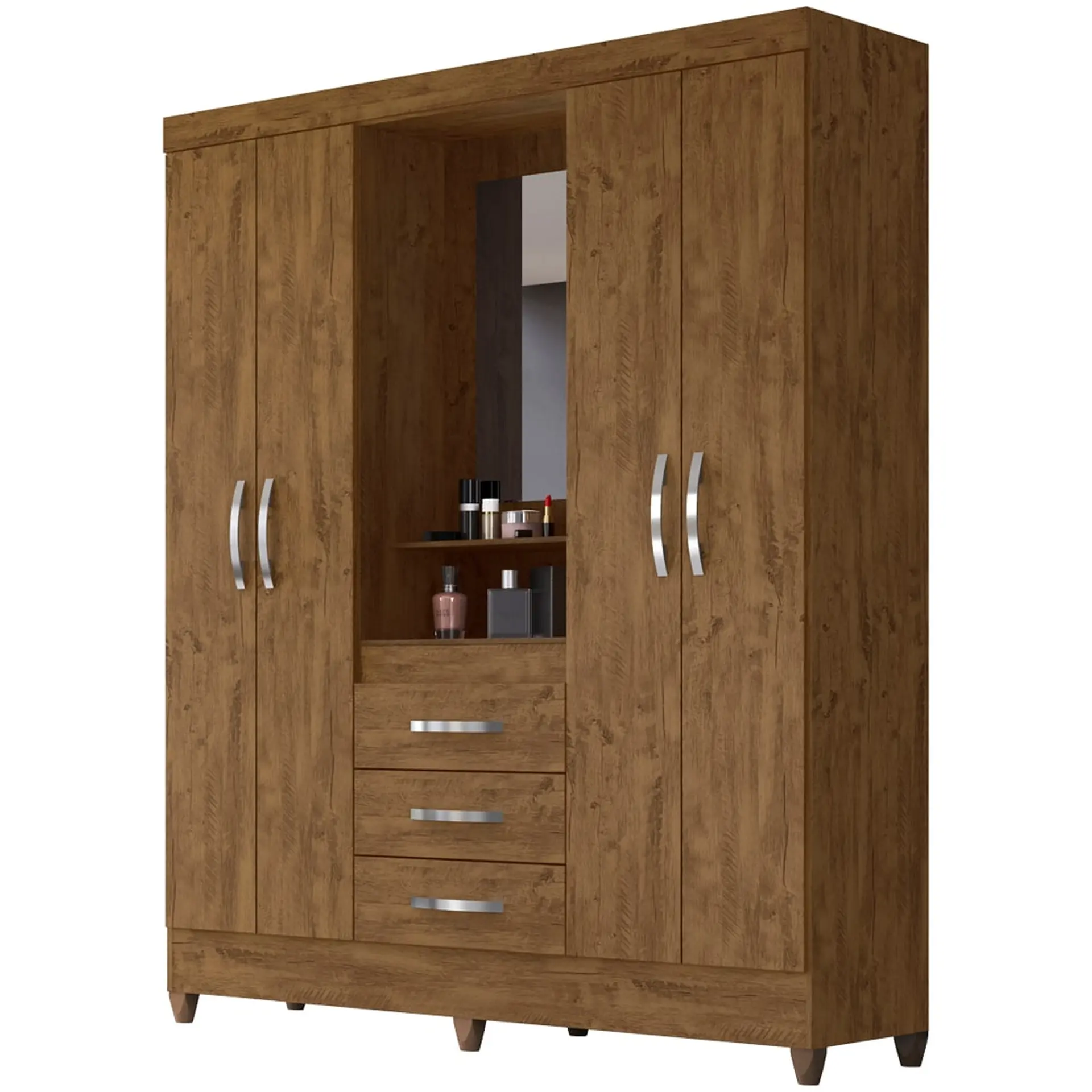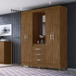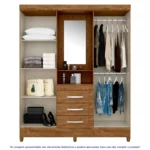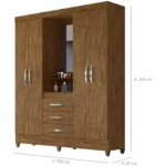 Guarda-Roupa Solteiro 4 Portas Bater 3 Gavetas Capri Moval Roupeiro – Castanho
