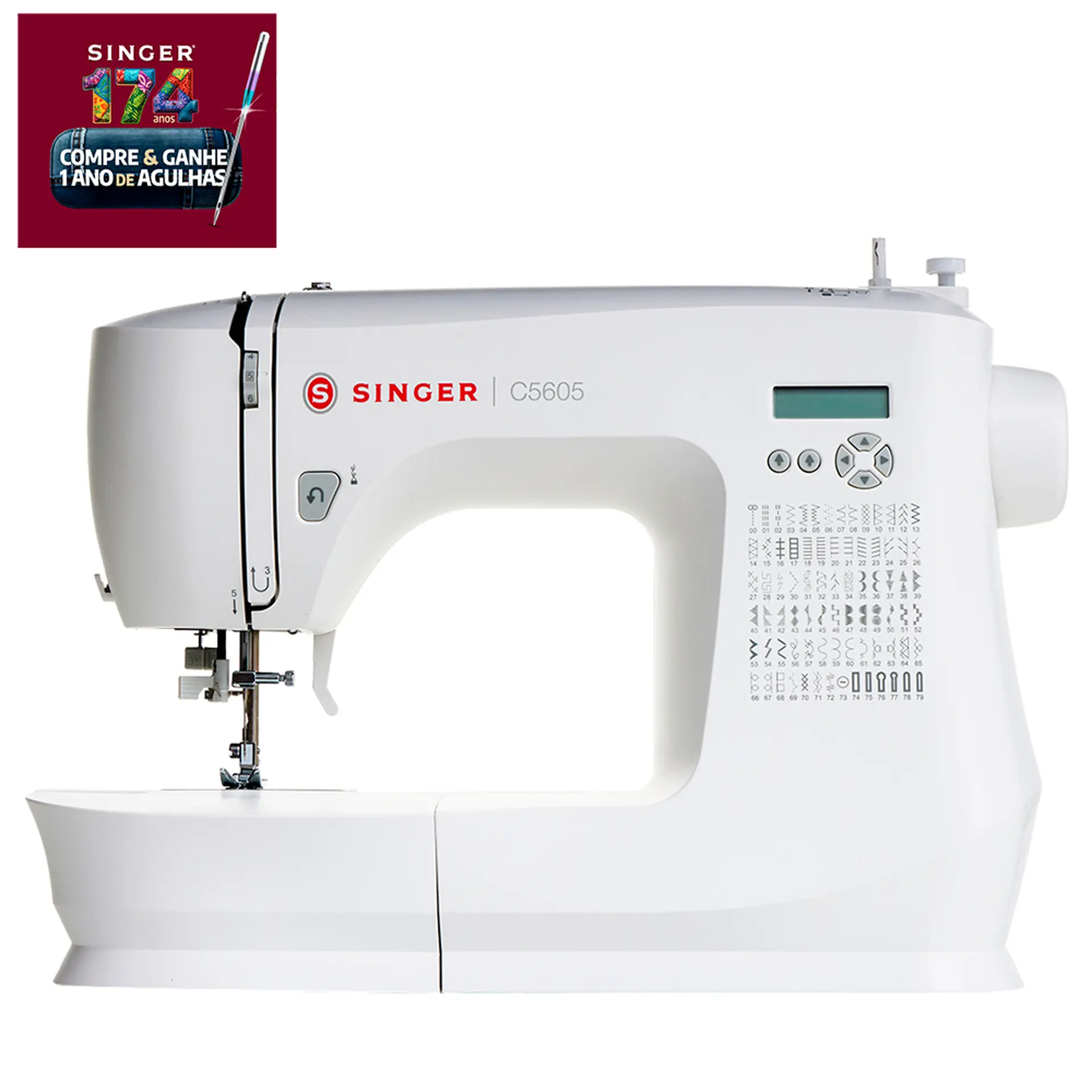 MÁQUINA DE COSTURA ELETÔNICA SINGER C5605 80 PONTOS COM 6 CASAS DE BOTÃO