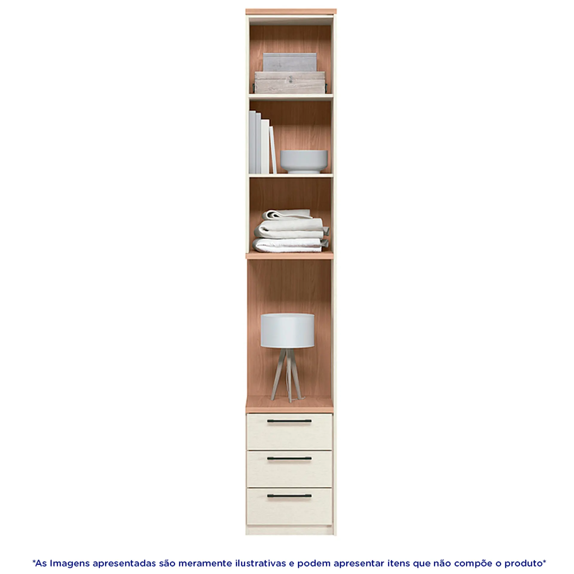 Modulo Lateral 41,7cm 01 Porta e 03 Gavetas Doce Vida Santos Andira – Areia/Wood