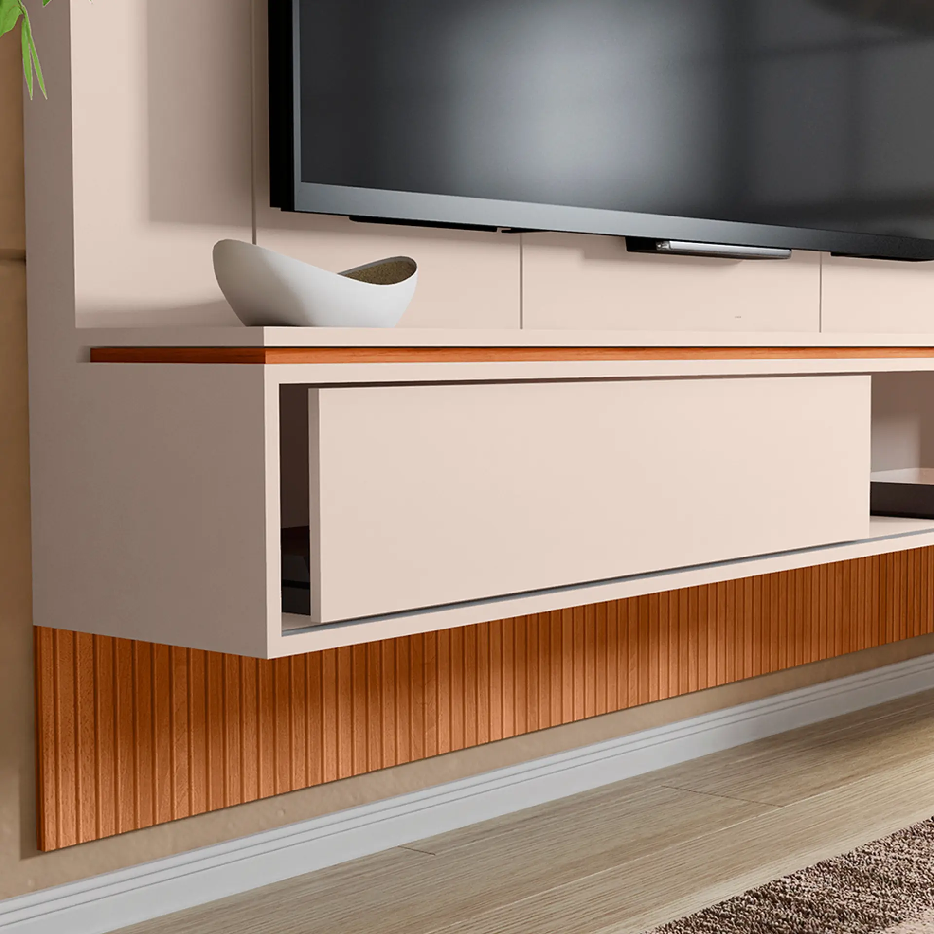 Painel para TV até 65″ com Nicho Vênus Caemmun – Off White/Freijó