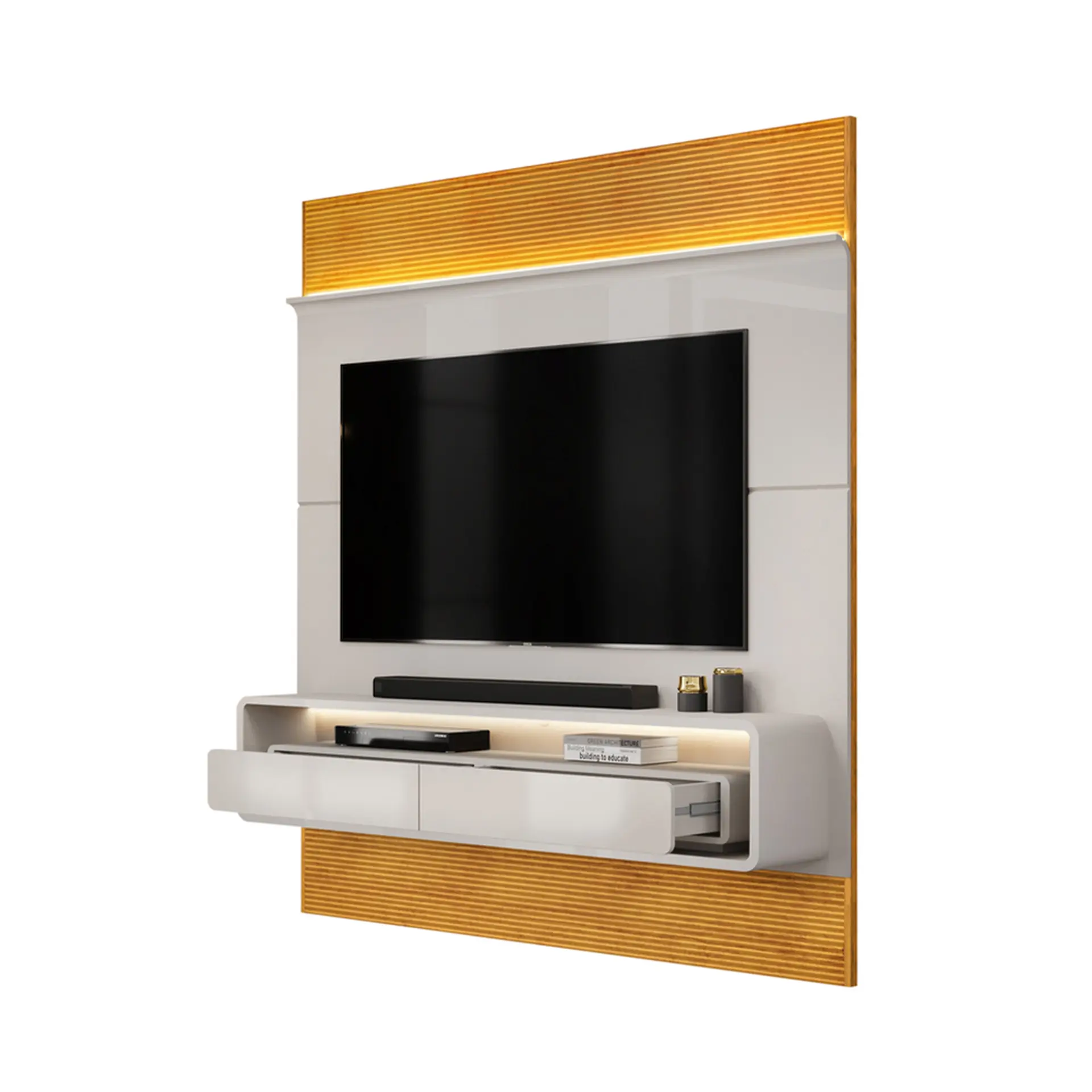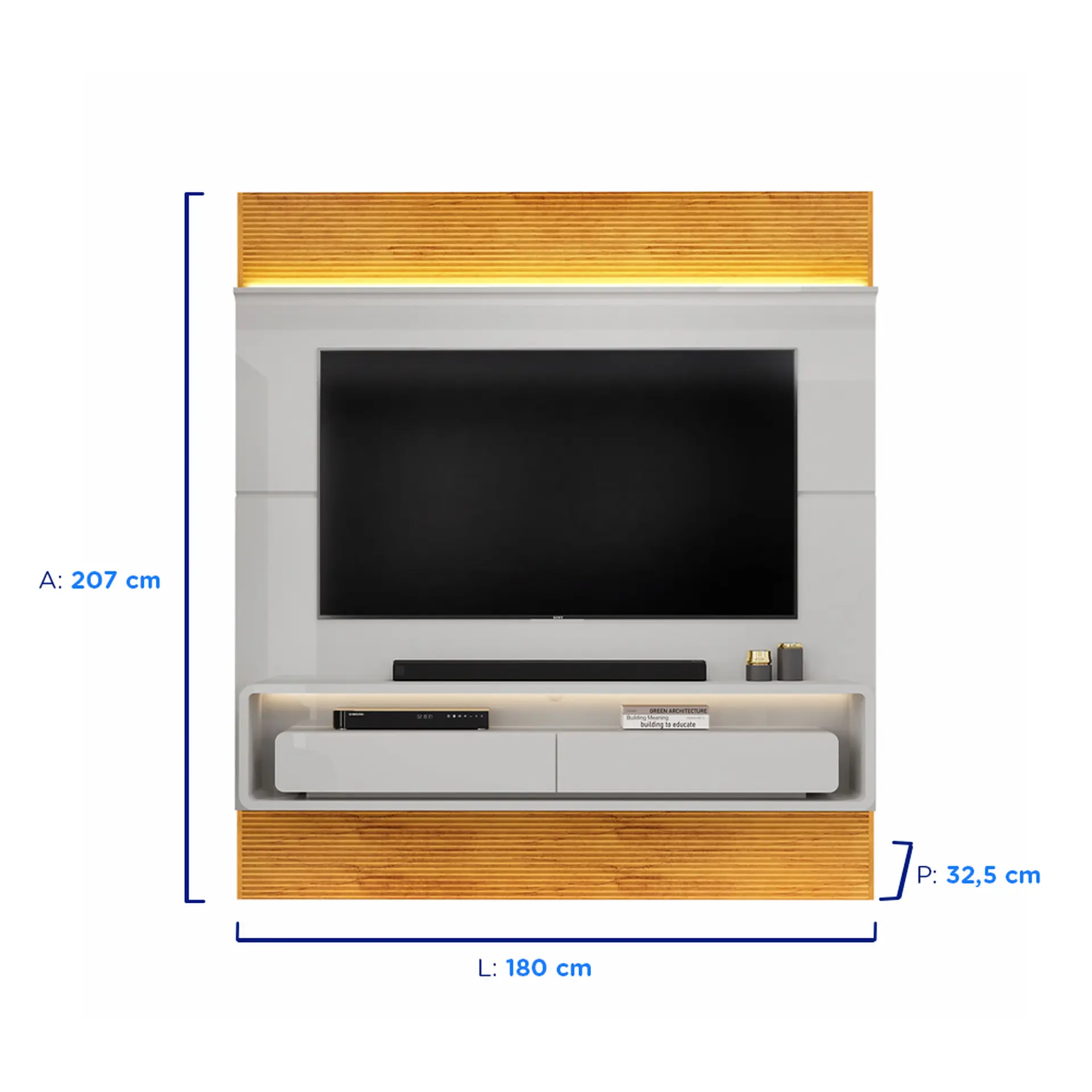 , este painel proporciona um ambiente elegante e organizado para seus momentos de lazer.
