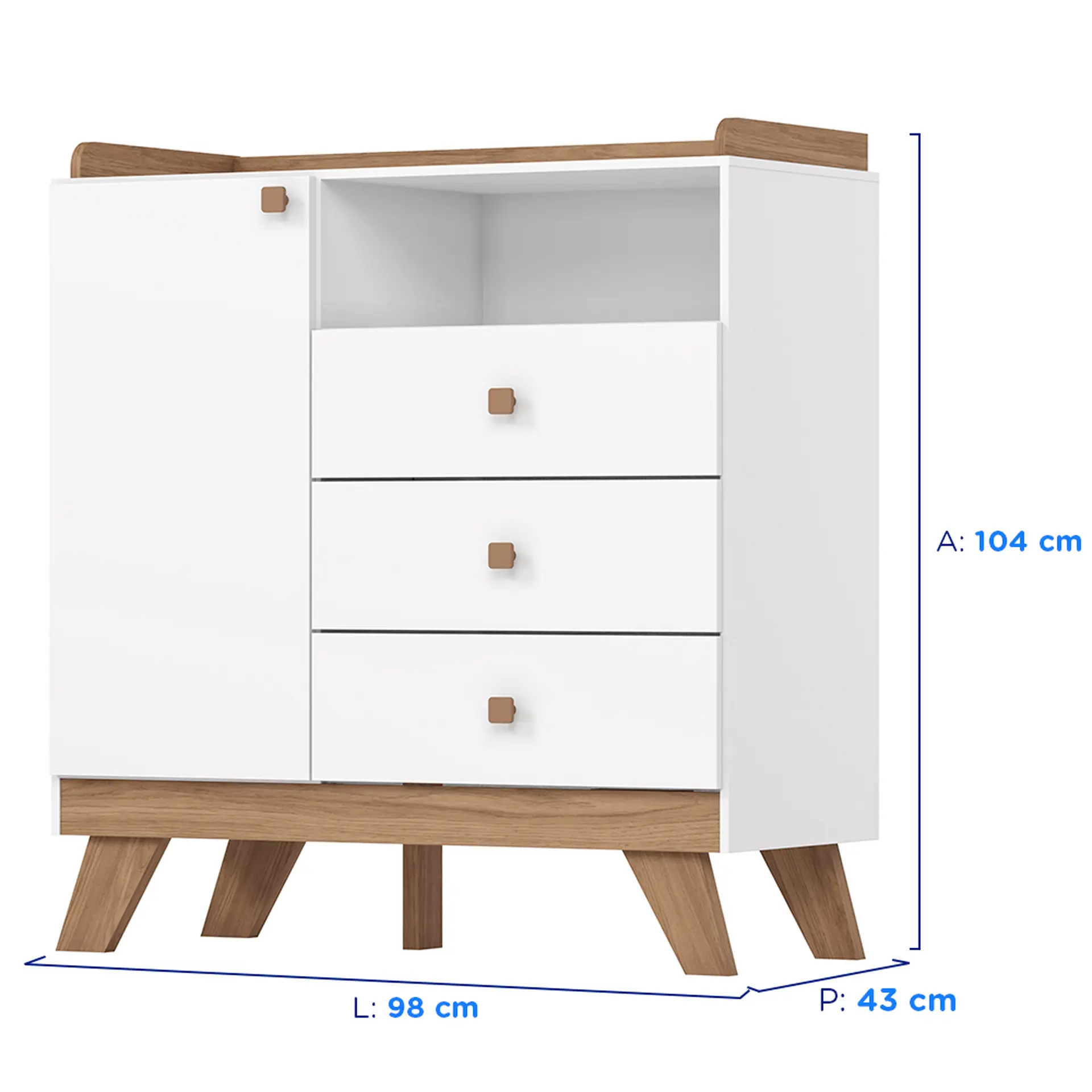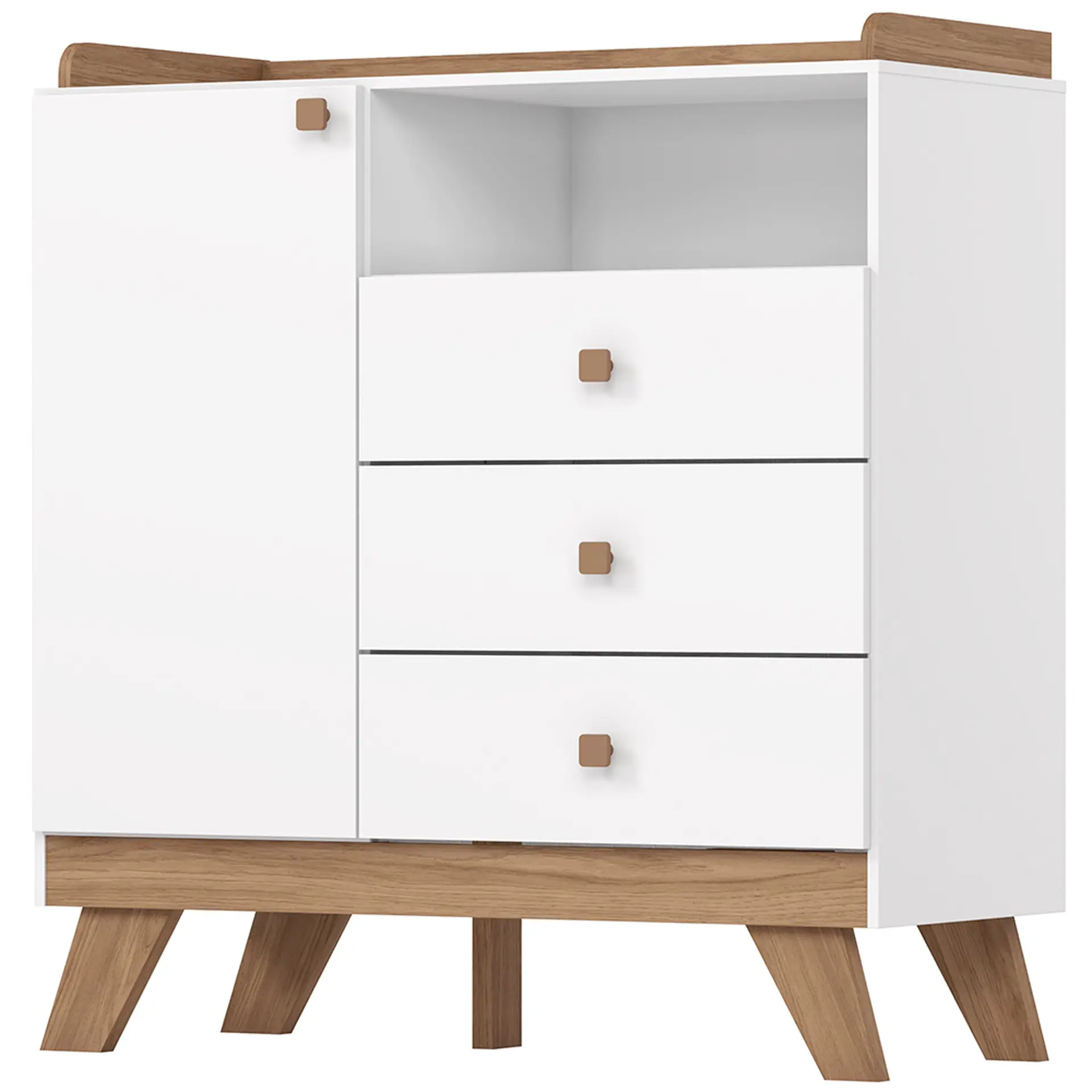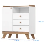 Com visual clean e acabamento impecável, a cômoda Confete oferece o espaço ideal para manter tudo à mão, desde fraldas e roupinhas até pequenos acessórios do bebê. São três gavetas amplas, que deslizam suavemente, além de uma porta lateral que acomoda itens maiores com facilidade. Os puxadores em madeira trazem um ar acolhedor ao móvel, enquanto a pintura UV garante beleza duradoura. Um móvel compacto, funcional e cheio de charme para tornar a rotina mais prática e o ambiente mais harmonioso.