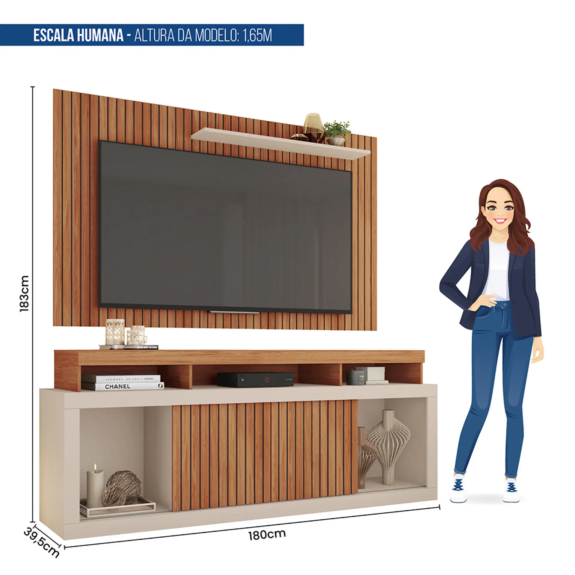 Rack com Painel Para TVs até 60″ MDP 2 Portas New Oscar Caemmun – Freijo/Off White