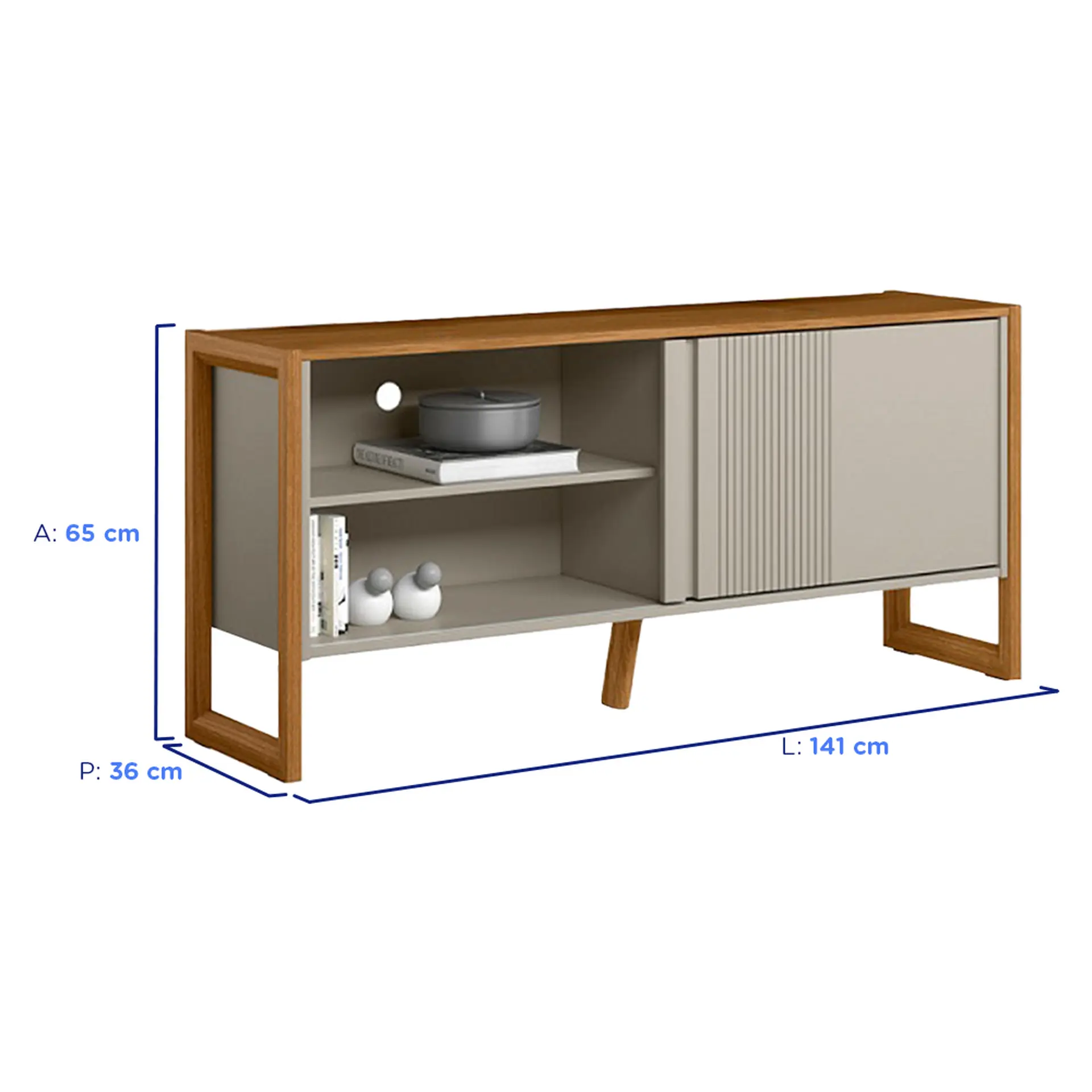 Rack para TV até 55″ 1 Porta de Correr Gold Linea Brasil – Nature/Off White