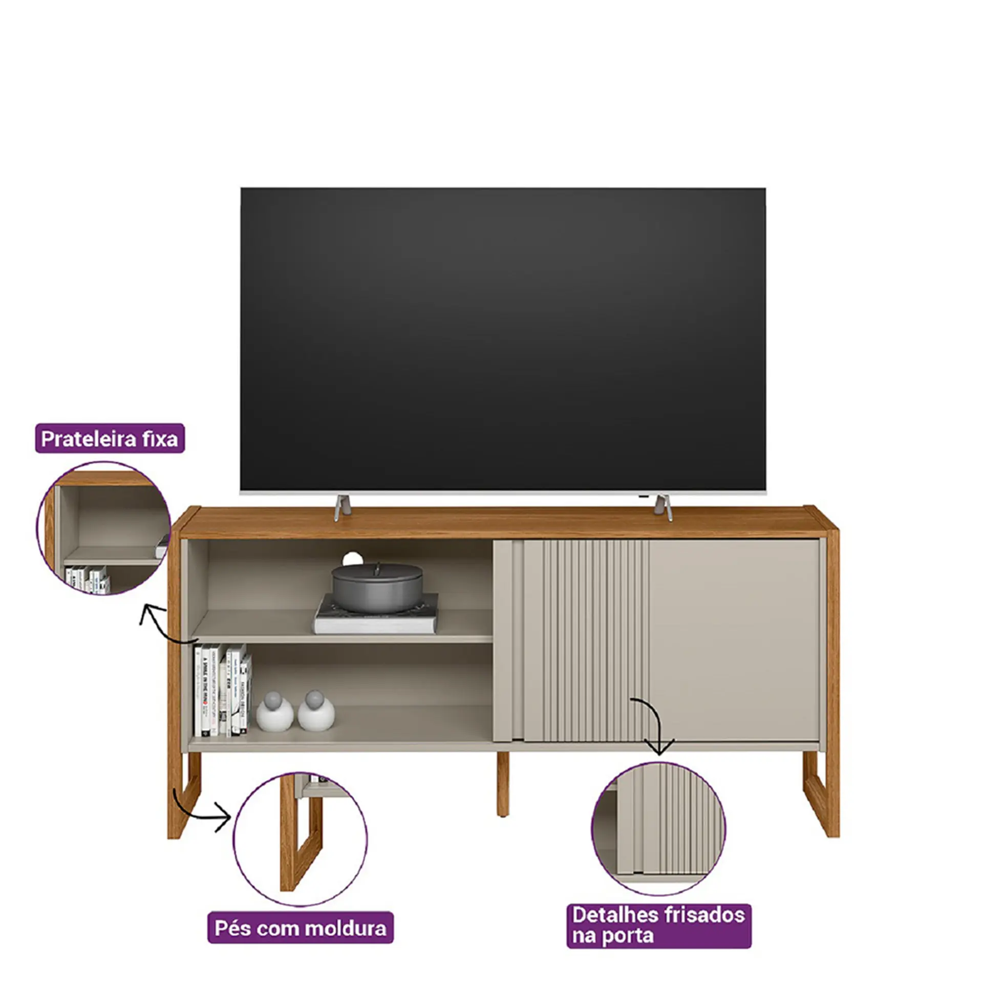 Rack para TV até 65” 2 Portas Mariana Valdemóveis - Cinamomo/OffWhite