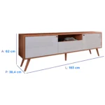 Com dimensões de 183 cm de largura, 62 cm de altura e 38,4 cm de profundidade, este móvel foi pensado para se adaptar bem a diferentes espaços. Seu peso total é de 34,8 kg, o que reflete sua construção sólida. Para conservar a aparência e a integridade do acabamento por muito mais tempo, a limpeza é simples: utilize apenas um pano seco ou levemente umedecido. É muito importante que você não utilize álcool ou qualquer outro produto químico, pois podem causar danos permanentes à superfície.