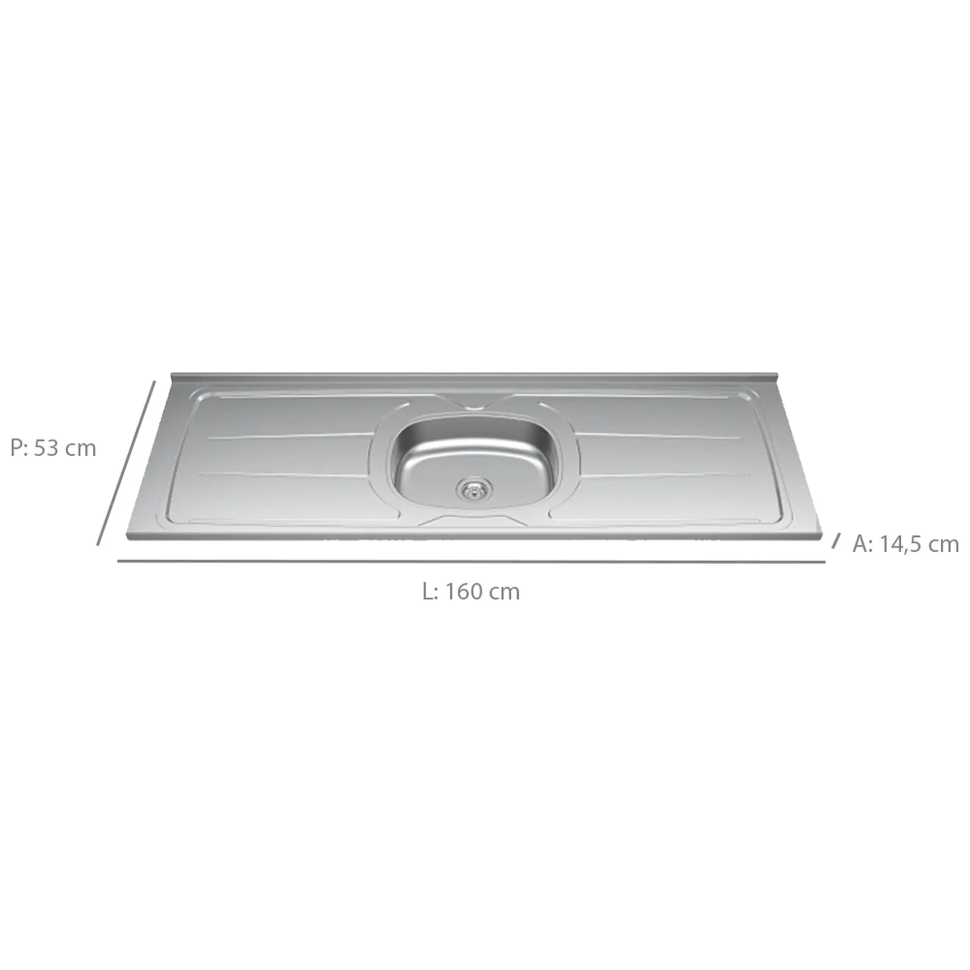 Tampo de Pia 160cm Aço Inox com Rebaixe Ghel Plus – Inox