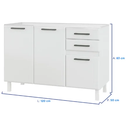 Balcão sem Tampo 2 Portas 3 Gavetas 120cm Liz Telasul em Aço – Branco